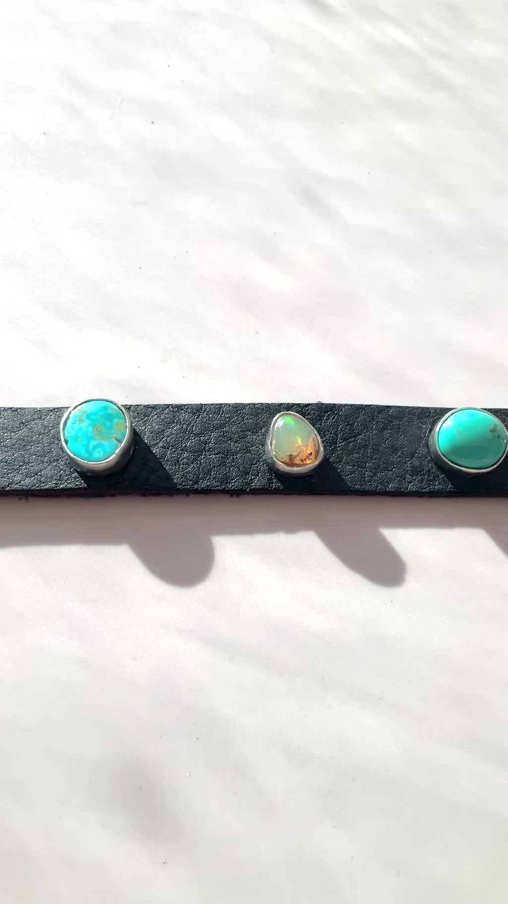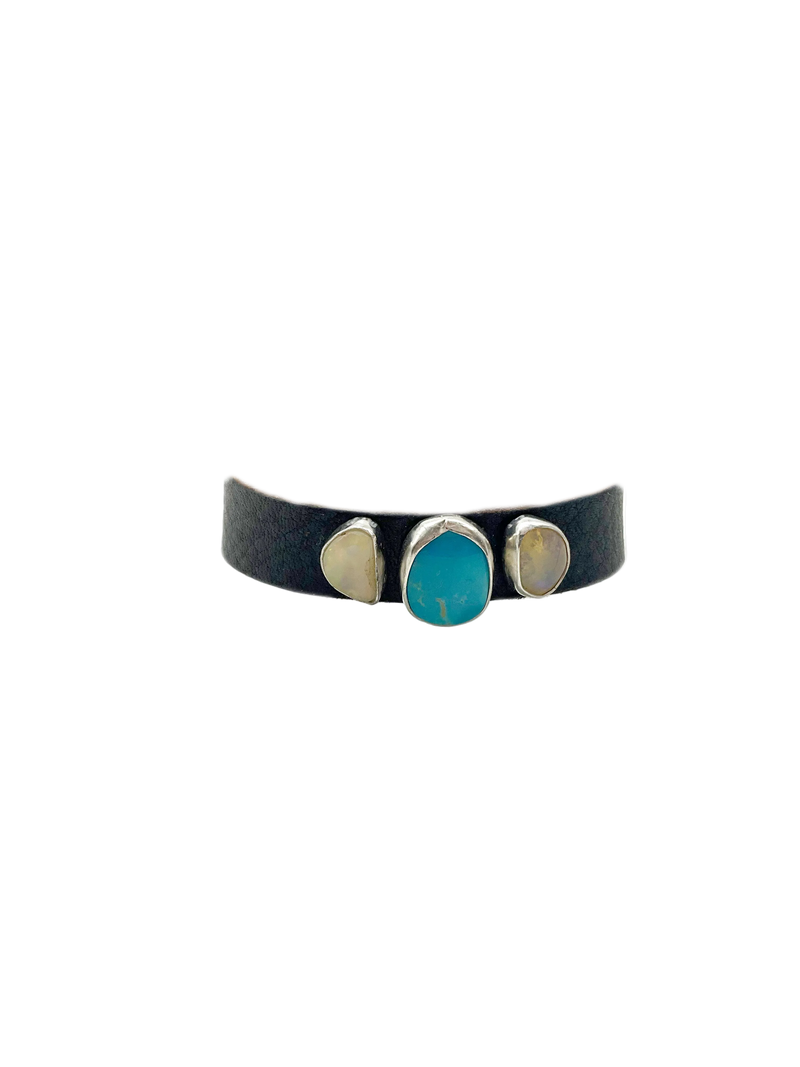 Novae Leather Choker Necklace: Turquoise + Opal + Sterling Silver + Genuine Leather