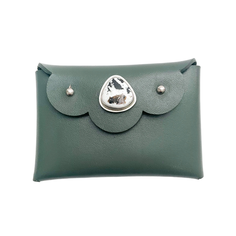 Olivia Leather Wallet: White Buffalo Turquoise + Sterling Silver + Genuine Leather