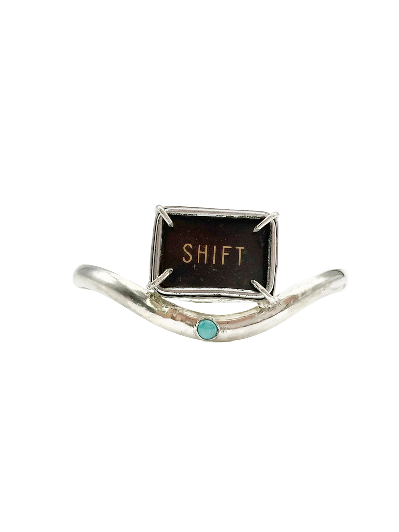 Shift Cuff Bracelet: Antique Typewriter Key + Turquoise + Sterling Silver