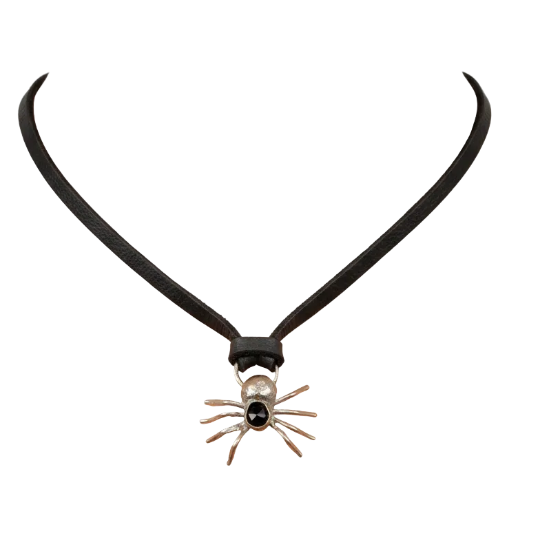 Spider Necklace • Gold Brass + Black Spinel + Deer Lace Leather • 16"